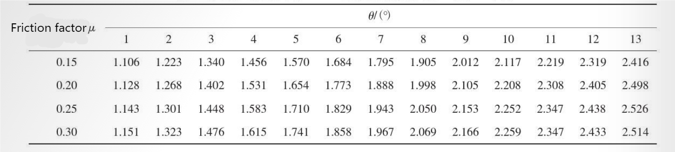 Table 1 P/σs values from the section at the bite point (ϕ=13.61°) to the section at the exit point (ϕ=0)