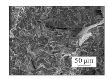 The impact fracture morphology of the rolled sample of 08Cr9MoVRE test steel was analyzed. The morphology was brittle fracture, and the macroscopic morphology showed that