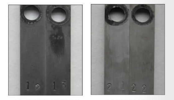 The corrosion test adopts the contrast method. The comparison steel is N80Q and the steel type is 34Mn6. A high-temperature autoclave is used to simulate the corrosion test. The mineral content of the corrosion simulation solution is shown in Table 8. The corrosion conditions are pH=4, temperature 90 C, and flow rate 2.0 m/s. , CO2 partial pressure is 2.0 MPa, H2S partial pressure is 50 kPa, and the test period is 7 days. The test results are shown in Table 9. The macroscopic morphology before stripping is shown in Figure 5, and the macroscopic morphology after stripping is shown in Figure 6.