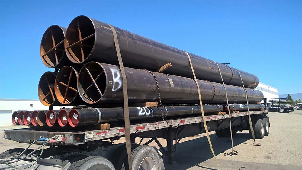 Trucks are the most common shipping method of steel pipe across Canada and the US. In Canada, trucks can haul a payload of approximately 46,000 to 80,000 lbs, depending on the source and destination of the product and the type of trailer being utilized for shipment. Tandem trailers can haul 46,000 lbs payload, triaxle trailers can haul 60,000 lbs. Quad axle trailers can haul a total payload of around 80,000 lbs.